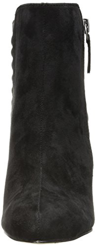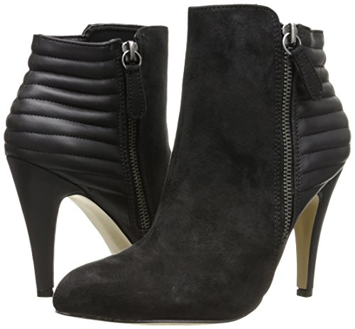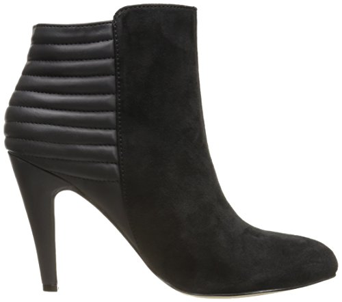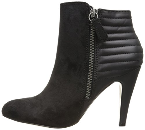 Dual-textured ankle bootie featuring asymmetric topline and quilted back panel
