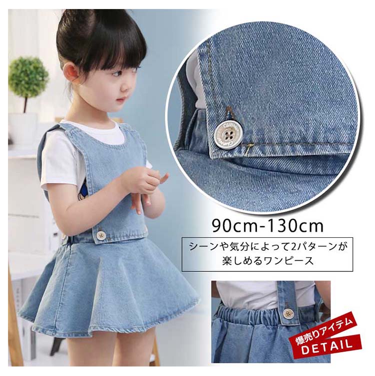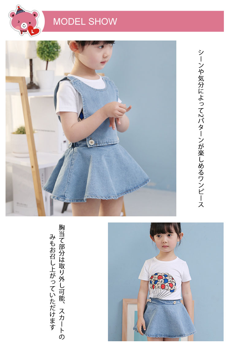 | シーンや気分によって2パターンが楽しめるワンピース胸当て部分は取り外し可能、スカートのみもお召し上がっていただけますふんわりとしたフォルムが女の子の可愛さを演出してくれます定番のデニム素材でシーズンレスに使っていただけるのも嬉しいpoint | |