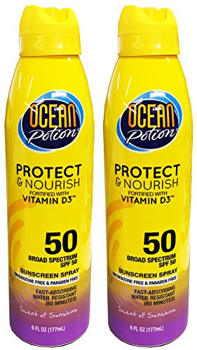 Ocean Potion Anti-Aging Continuous Spray Sunblock SPF 50 6 oz For Quick Coverage Ocean Potion Instant Dry SPF 50 Mist Anti-Aging Sunblock with Parsol 1789 (Avobenzone) provides the highest sunscreen protection without rubbing onto skin. This non-greasy instant drying formula is ideal for all outdoor activities. Provides Broad Spectrum UVA I, II, and UVB protection for xtreme sun exposure. Solaplex enhances the stability of Parsol 1789 (Avobenzone) which makes Ocean Potion sunscreens more reliable and longer lasting. Broad Spectrum Protection with Parsol 1789 Instant Dry Water/Sweat Resistant 360 Continuous Spray Made in the USAFeature