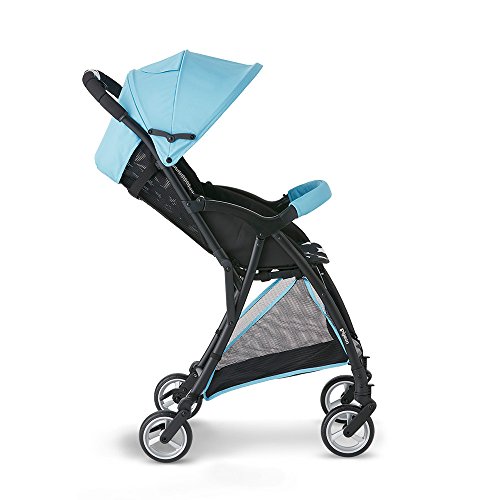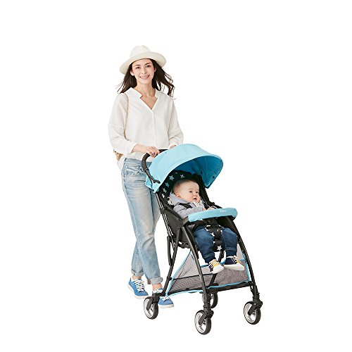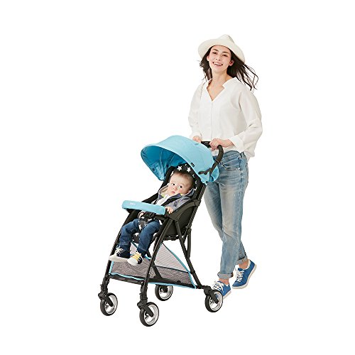 押しやすい「シングルタイヤ」を搭載した軽量B形ベビーカー。片手でコンパクトに折りたためます。