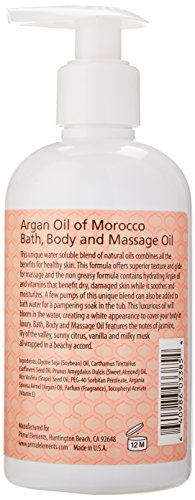 Use the argan oil of morocco bath, body and massage oil from primal elements as a massage oil with superior texture, in the bath for a pampering soak or after the bath for an all over moisturizer. It has the signature fragrance of a blend of sultry vanilla musk and cedarwood with delicate notes of Jasmin and lily of the valley, all are kissed with citrus and wrapped in a breezy breach accord. Primal elements are dedicated to providing high quality bath and skin care products while protecting the environment and using renewable resources.Feature