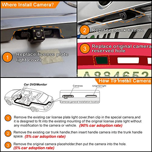 Navinio HD Color Waterproof Vehicle Car Rear View Backup Camera, 170 Degree Viewing Angle Rearview Reverse Camera for Honda Accord Pilot Civic EK FD Odyssey CRV Car