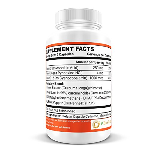 -. Feature : Enhances Memory,Brain function And Digestion/ Relieves Joint pain, Back and Arthritis pain. / Help Reduce Inflammation. Anti-Inflammatory. / Curcumin C3 Complex® is 2,000% more bioavailable. / Studies on Curcumin C3 Complex® have validated its defense against the effects of oxidation, neutralizing free radicals to help support joint, brain, heart and circulatory health. / Omega-3 fatty acids is supplement for antioxidant and anti-inflammation agent. DHA helps nerve conduction and postpone brain aging. EPA is known as an anti-Cardiovascular diseases.