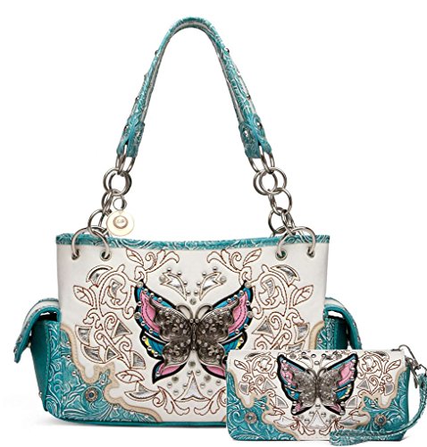 -. Brand : Western LuxeBag -. Color : Black -. Department : womens -. Feature : Western butterfly metallic handbag wallet set, and LB key chain / Handbag size 13(L) by 8(H) by 5(W) inches (drop length 11 inches) / Concealed gun purse, Pocket size 8.5(L) x 4.5(H) inches. / More details in the description -. NumberOfItems : 2 -. PackageQuantity : 1 -. ProductGroup : Shoes -. ProductTypeName : HANDBAG -. Size : Medium -. Title : Western Purse Wallet Set with 3D Metal Butterfly