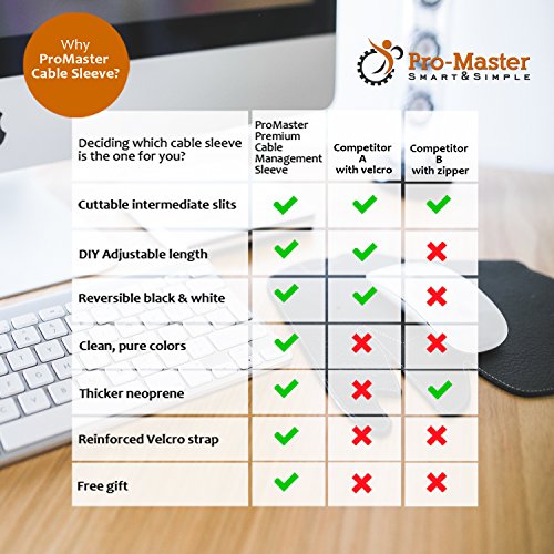 GUARANTEED SATISFACTION & WARRANTY. You’re going to love how our cable sleeve organizes, camouflages and protects your cables. But just in case you don’t, ProMaster provides a no-questions asked 100% Money-Back Guarantee and 12 Month Replacement Warranty.
