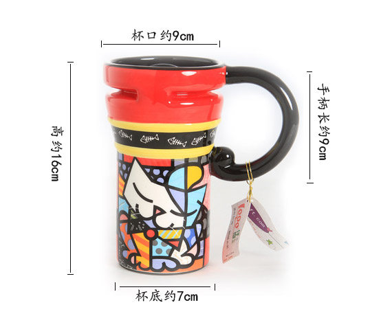 尺寸:高约16CM,杯口直径约9CM,杯底直径约9CM,手柄长度约9CM