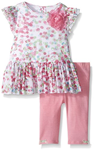 This fun play set has a polka dot mesh tunic top that is paired with soft jersey knit leggings