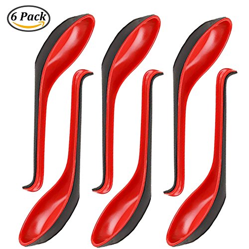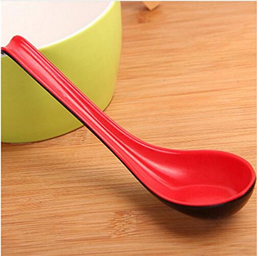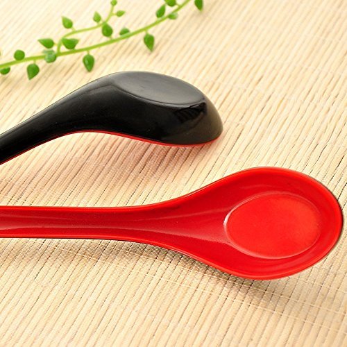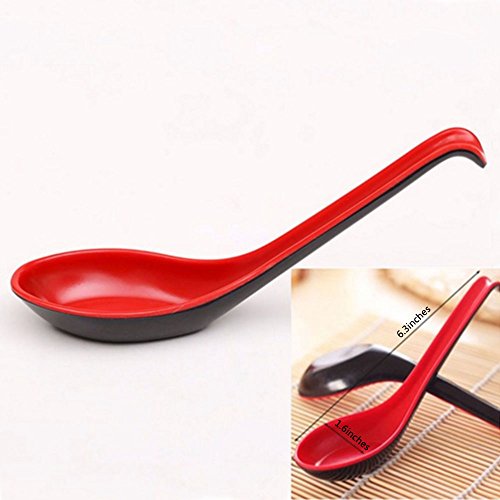 Large Red and Black Soup Spoons with Long Handle (6Pcs)