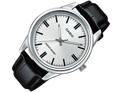 -. Title : Casio MTP-V005L-7A Men's Black Leather Dress Watch SilverDial