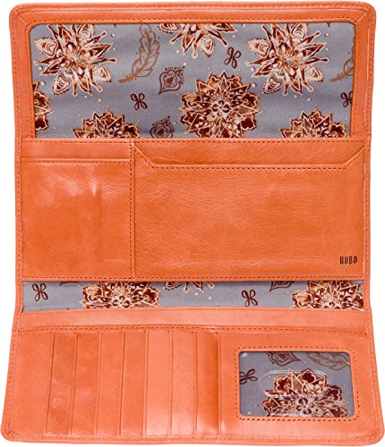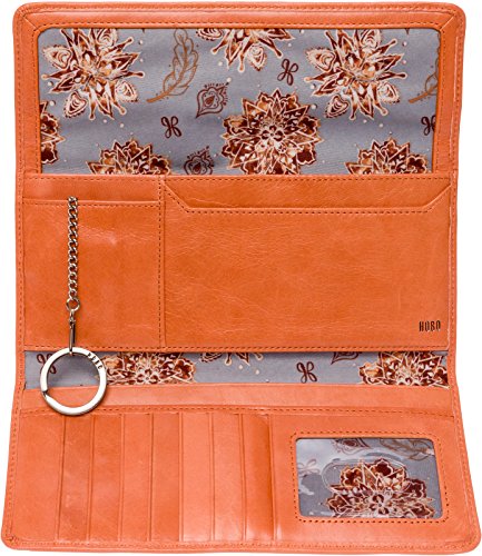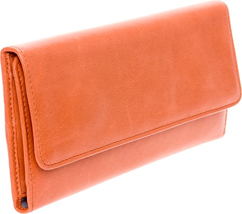Beautifully mixing style and function, this classic Sadie Continental Wallet by Hobo transitions perfectly from day to night! This clutch wallet is made from top-grain genuine leather that has been extra tumbled for a unique, broken-in vintage look. The fully lined interior features 7 card slots, 3 bill pockets, 1 slip pocket, 1 clear ID window, and an attached key ring. A strong magnetic closure keeps this bag secure while an on the go coin pouch is placed on the outside for quick access. Measures 8.75" x 4" x 1", folds out to 11" wide.Feature