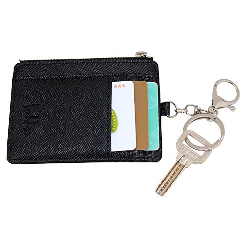 -. Brand : boshiho -. Department : mens -. Feature : Genuine leather material, made from soft, flexible and durable saffiano leather / Coin change purse with a key ring attached for easily and safely carrying your key / Front ID window with clear cover features visibility and protection. Back 4 card slots for easy management and access / Side zipper pocket for coin, cash, credit cards and more / Dimension: 4.3 x 3.3 x 0.2 inch; Perfect to be used in conjunction with your wallet or great for single use -. PackageQuantity : 1 -. ProductGroup : Shoes -. ProductTypeName : SHOE_ACCESSORY -. Size : 4.3 x 3.3 x 0.2 inch -. Title : Boshiho Saffiano Leather Credit Card Holder Coin Change Purse with Key Ring Keychain
