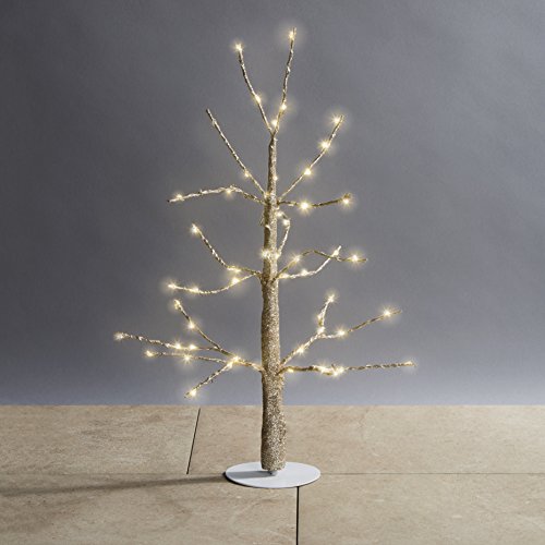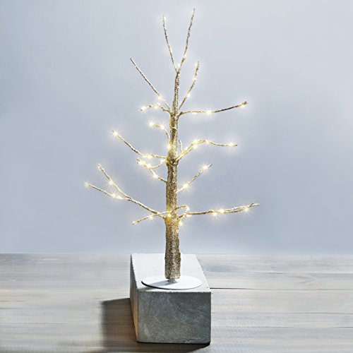 Pre-lit Gold Glitter Mini Tree with 60 Warm White Sparkling LEDs | 18 inches, Indoor Use, Plugin, Decorative Christmas Light, UL Listed
