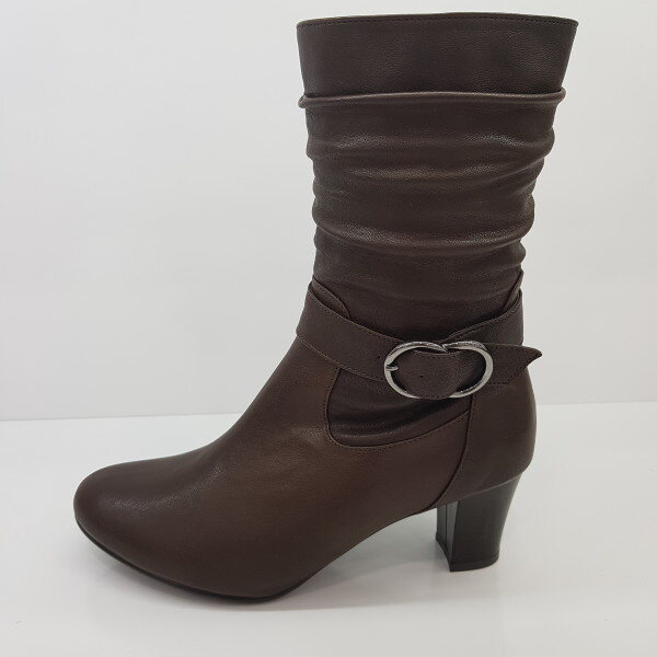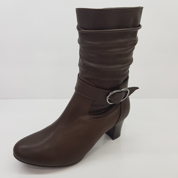 ◆다리 라인이 피트되어 착화감이 좋은 드레스 하프부츠 플랫폼과 굽에 각각 심플한 장식을 사용하여 포인트를 줌. 플랫폼이 있어 높이감이 있지만 안정감 있는 스타일.