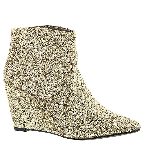 Rear zip closure. Pointed toe, ankle bootie silhouette. Fabric lining. Padded insole. Covered wedge heel. Man-made outsole. Imported.
