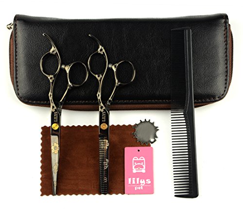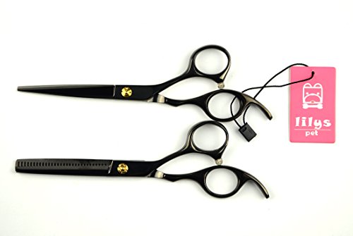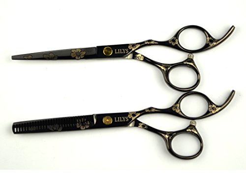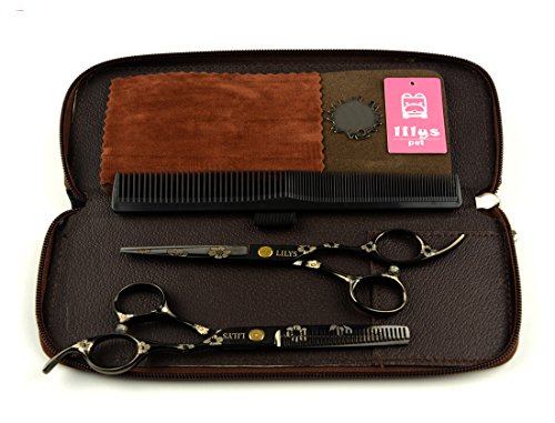 LILYS PET 5.5"/6.0" SAKURA Professional Barber Razor Edge Hairdressing Scissors and Hair Thinning Scissors/Shears Set (6.0”, Black)