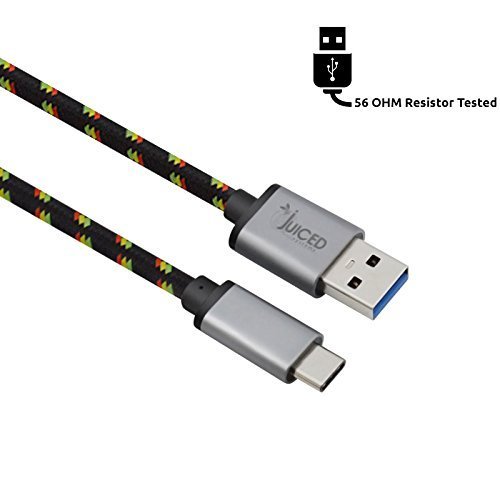 Juiced Systems USB-C to USB 3.0 Braided Data & Charging Cable - 6.6 ft Length - Made with 56Ω Resistor