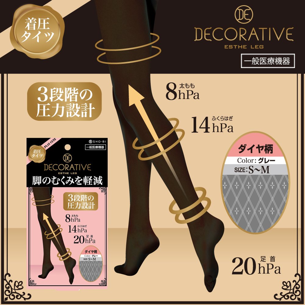 [Decorative E leg tights pressure diamond pattern gray (S - M) SE85212]