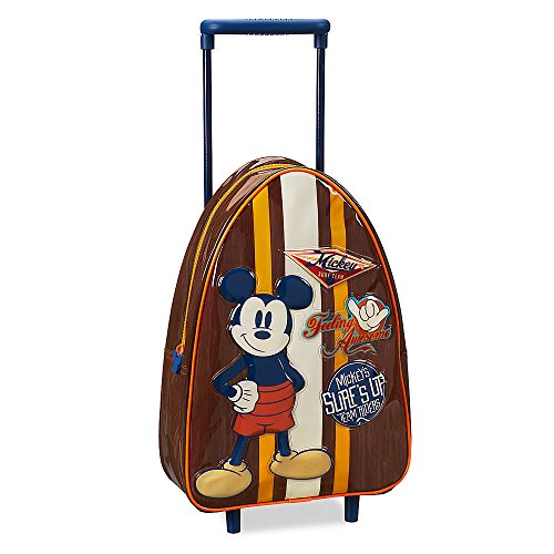 Product Description Surf's up and adventure awaits with this adorable rolling suitcase featuring everyone's favorite pal Mickey Mouse. The surf-theme decal design adds and retro cool style that's sure to provide waves of fun. 0