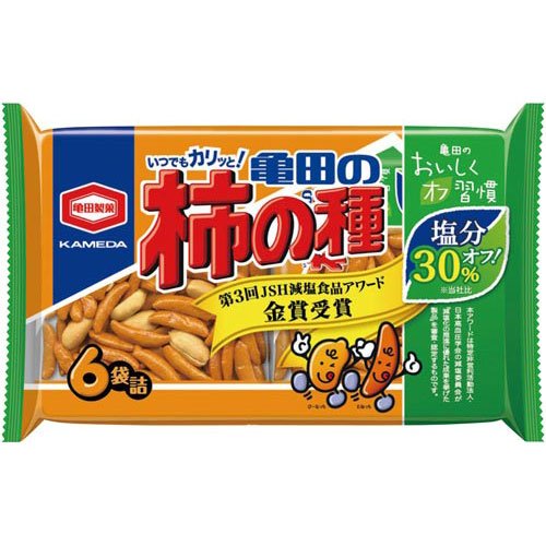 30%염분 컷 했다카메다의 카키노타네.맛있음 그대로,보다 안심하고 건강하게 걱정하는 안주 미과로서.맛있음 그대로,염분30%컷의카메다의 카키노타네.산지(미)/국산 단위(입수)/1세트(6대입×3)메이커 물품 번호/194225×3