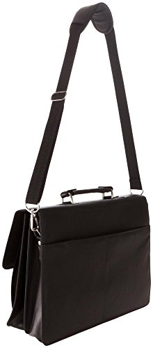-. Feature : Genuine top grain leather exterior with double gusset flapover construction, secure lock closure, and fully lined interior / Front pocket organizer accommodates a variety of business essentials / Spacious front open compartment and rear compartment features full length zipper pocket / Rear exterior open pocket and convenient, sturdy top handle / Removable, adjustable, and padded ergonomic shoulder strap