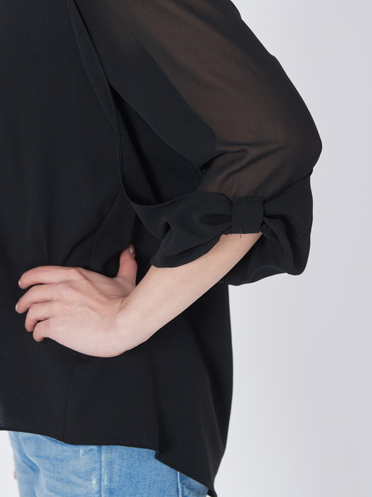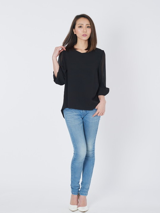 ゆったり可愛い袖シフォンブラウスです。休日デート、これからの時期、人の集まりシーンに大活躍女子会、ちょっとしたフオーマルな場所にも着ていけます。