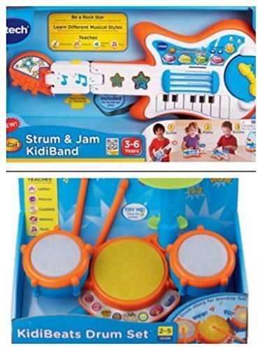 -. Title : V-Tech KidiBeats Drum Set and Strum & Jam KidiBand Guitar Piano Keyboard and Drum Bundle