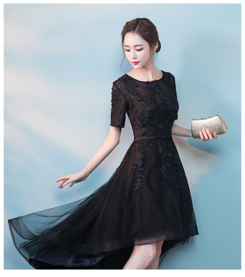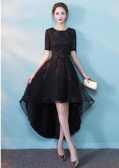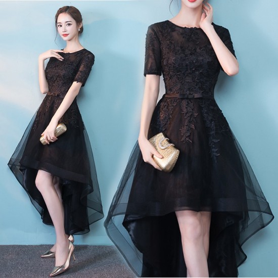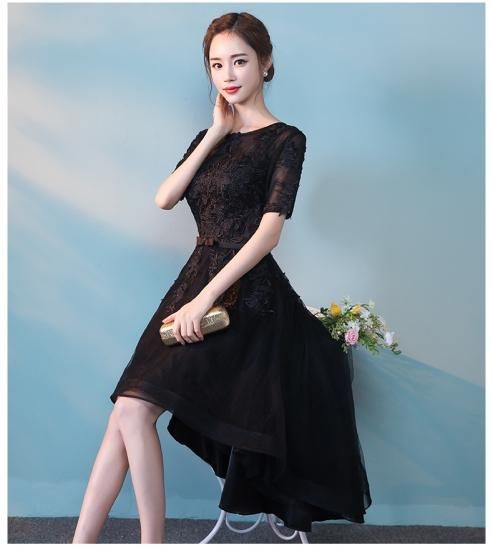 パーティードレス ロング丈 ひざ丈 レディース ワンピース フィッシュテール ブラック 半袖 エレガント 上品 イブニングドレス お呼ばれ drgz0775