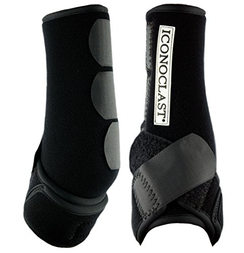 Studio : Western Legacy Sales Publisher : Western Legacy Sales Binding : Misc. Product Description DESIGN FUNCTION - Iconoclast® Boots feature our patented Double Sling Straps® for unparalleled lateral support. With its evenly distributed support to the suspensory branches, Iconoclast® is the only boot that truly lifts cradles the equine leg. Designed to reduce joint interference restriction, this is the perfect all around boot for all disciplines. Designed to use every day to aid in the prevention of soft tissue damage of the lower legs, our boots will help your horse feel more confident with each step he takes, in out of the arena. THE ICONOCLAST® DIFFERENCE - Iconoclast® has absolutely REVOLUTIONIZED equine leg support. Our boots are designed to support protect the suspensory sesamoidial regions by providing 360-degree support of the equine leg. Never has this method of support been provided for the equine athlete through a strap on, non-restrictive device. Iconoclast® Boots were designed by horse trainers leading veterinarians who were unsatisfied with the performance of every other equine boot in the marketplace. The equine leg needs support protection against the daily rigors of extreme physical activities there has not been a boot that adequately meets both of those demands until now. MEASUREMENT SIZING CHART - Using a soft measuring tape or string, measure your horse's fetlock circumference. Be sure to measure both the FRONT HIND fetlocks as they are often different sizes. Customers regularly order boots in one size for the front legs a different size for the hind legs. Small: 8.5 - 9.5 in./21.59 - 24.13 centimeters Medium: 9.5 - 10.5 in./24.13 - 26.67 centimeters Large: 10.5 - 11.5 in./26.67 - 29.21 centimeters XL: 11.5 - 12.5 in./29.21 - 31.75 centimeters XXL: 12.5 - 13.5 in./31.75 - 34.29 centimeters APPLICATION - Visit http://youtu.be/NWmTL7hnwPE for application instructions 0