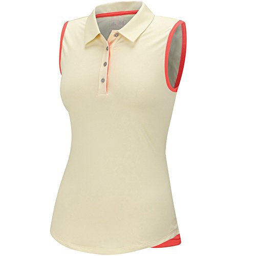 adidas Golf Women's Essentials 3-Stripes Sleeveless Polo Shirt, Faded Sun/Flash Red, Small