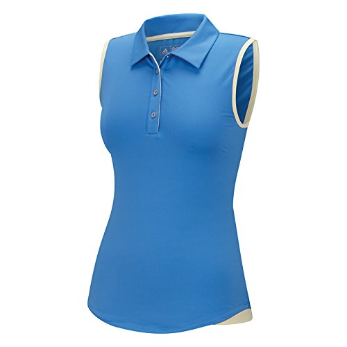 adidas Golf Women's Essentials 3-Stripes Sleeveless Polo Shirt, Chambray/Faded Sun, Large