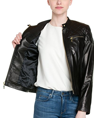 Cole Haan Women's Single Breasted Moto Jacket with Quilting Details