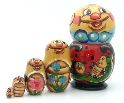 -. Feature : Ladybug Russian nesting doll, hand carved and hand painted by Russian artist. Signed. / Size: 3 1/2" Tall, 2" Diameter, set of 5 / Made in Russia from real wood. New condition from non-smoking home / Each item is hand painted and may have slight differences in details and collor. / Quick (1-2 day) handleing time. Shipping from Los Angeles, CA. Combine shipping: just $0.99 fro the next item