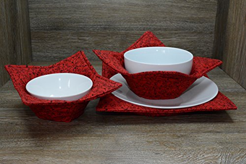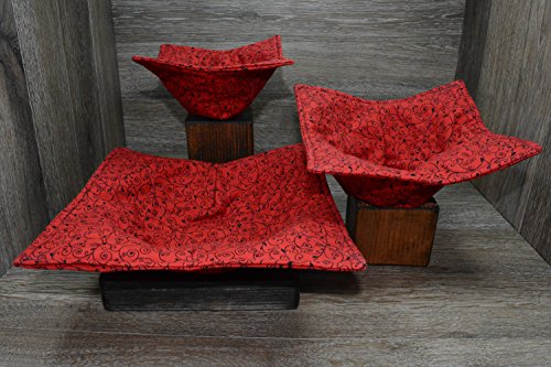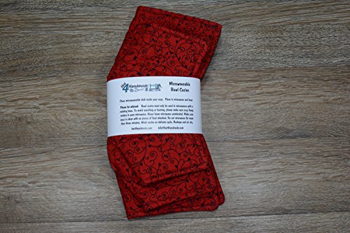 Product Description Microwave cozy set includes 1 small bowl cozy (Approx 6.5" sq), 1 medium bowl cozy (Approx 8" sq), 1 dinner plate cozy (Approx 10" sq.) The dinner plate cozy can also be used for round casserole dishes and the small size is great for coffee mugs! These microwave cozies are the perfect solution to handling super-hot dishes. Cooking and reheating food in a dish cozy makes life so much easier! Place your microwaveable dish inside the bowl cozy and put the whole thing in the microwave to heat. To take the bowl out, you simply grab the corners of the cozy. We found that our kids can now get their dishes out of the microwave safely. Cozies will also protect your fingers from the cold when holding a bowl of ice cream and are great for protecting your table. You can also use a cozy placed on top the dish you are microwaving to help steam food. MATERIALS: * 100% cotton fabric * 2 layers of 100% cotton batting * 100% cotton thread Please be advised: Bowl cozies must only be used in microwaves with a rotating base. To avoid scorching or burning, please make sure cozy freely rotates in your microwave. Never leave microwave unattended. Make sure cozy is clean with no pieces of food attached. Do not microwave cozy for more than three minutes. Cozies can be machine washed on delicate cycle. Reshape and allow to air dry for best results. Please let us know if this is a gift, and we will ship without a packing slip enclosed! #bowlcozy #microwaveable #handmadeatamazon #hot4handmade #buyhandmade 0