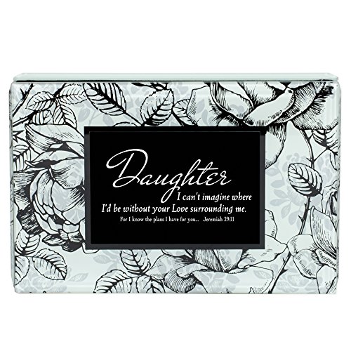 Daughter Love Jeremiah 29:11 Black and White Rose Glass Jewelry Music Box Plays Amazing Grace