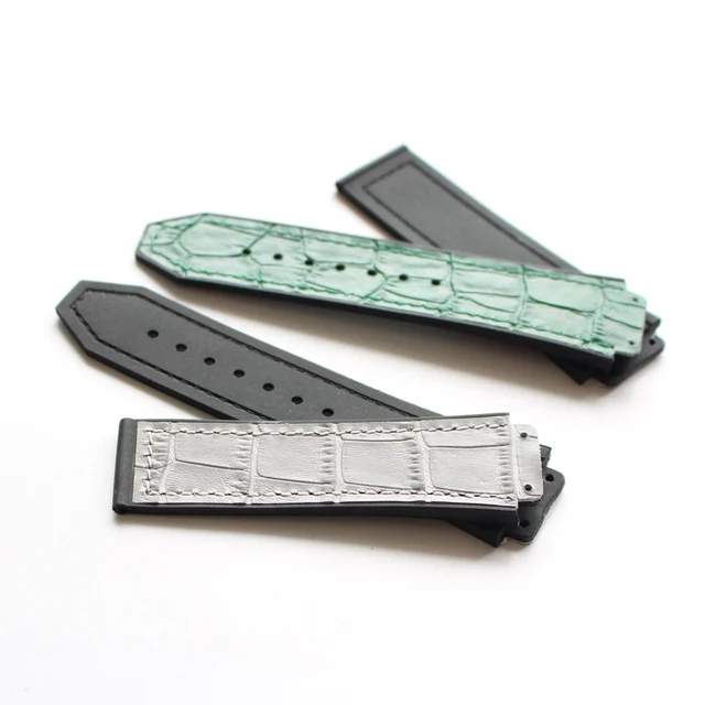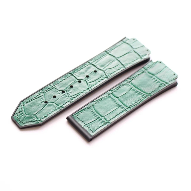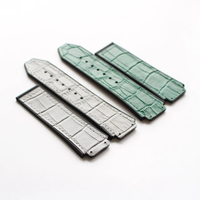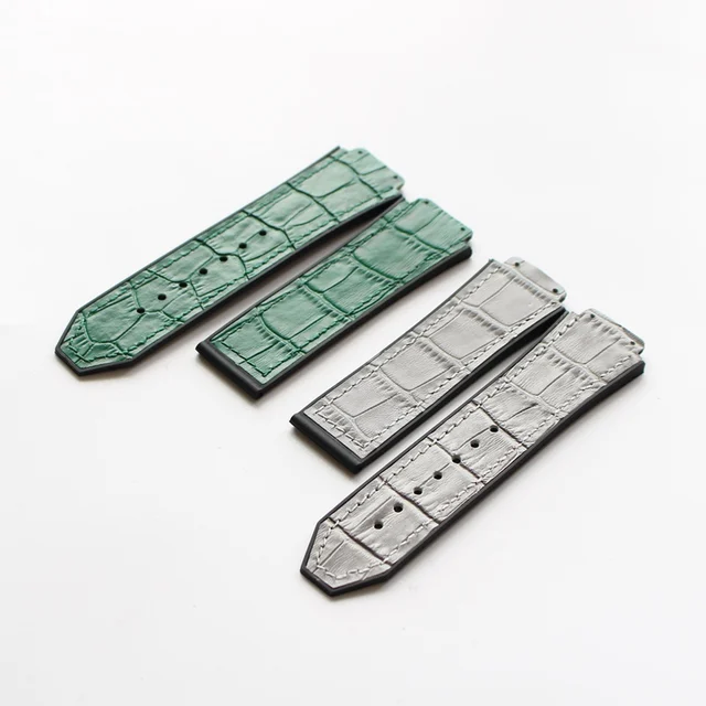 | [해외]TJP 브랜드 회색 녹색 남성 25*19 정품 가죽 + 실리콘 고무 시계 스트랩 시계 줄 HUBLO 대한 큰 t 뱅 시계 단어 |