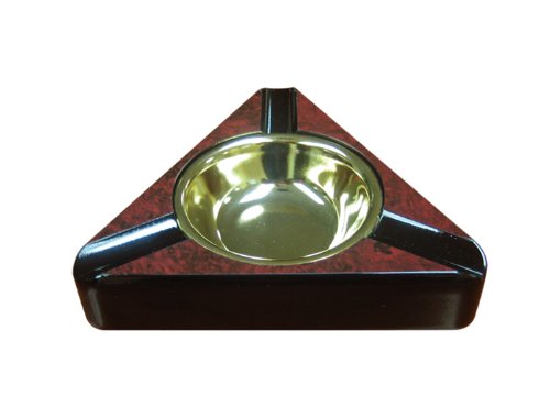 -. Feature : Handsome Triangle Wood & Metal Ashtray / Dark Lacquer Burl Wood Finish on Top / Black Lacquer Sides for Contrast / Metal Ash Reservoir / 6-3/4" L x 6-3/4" W x 1" H