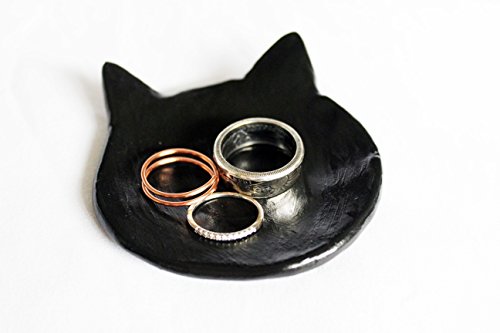 -. Title : Cat Ring Dish, Ring Tray, Ring Holder, Jewelry Dish, Jewelry Display, Clay Dish, Ring Bowl, Cat Lady, Jewelry Storage, Black Ring Dish