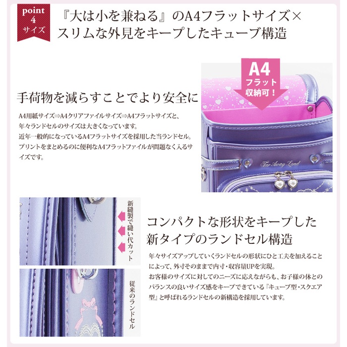 콤팩트에 슬림한 큐브형 구조의 란도세루(초등학생이 어깨에 매는 가방)입니다.