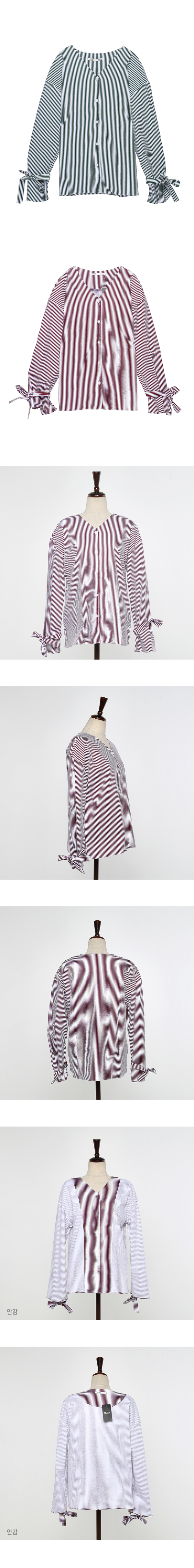 - 깔끔한 세로스트라이프 패턴으로 소매에 리본으로 포인트를 준 상품입니다.