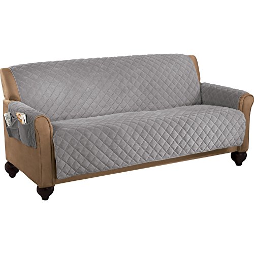 -. Feature : Protect your furniture from wear and tear, pet hair and more with this micro fleece furniture cover / Handy pockets on the arm rests are perfect for holding reading materials, glasses, remote controls / Polyester / Colors available in Burgundy, Chocolate or Slate Gray / Sizes available for a Chair, Recliner, Loveseat, or a Sofa.