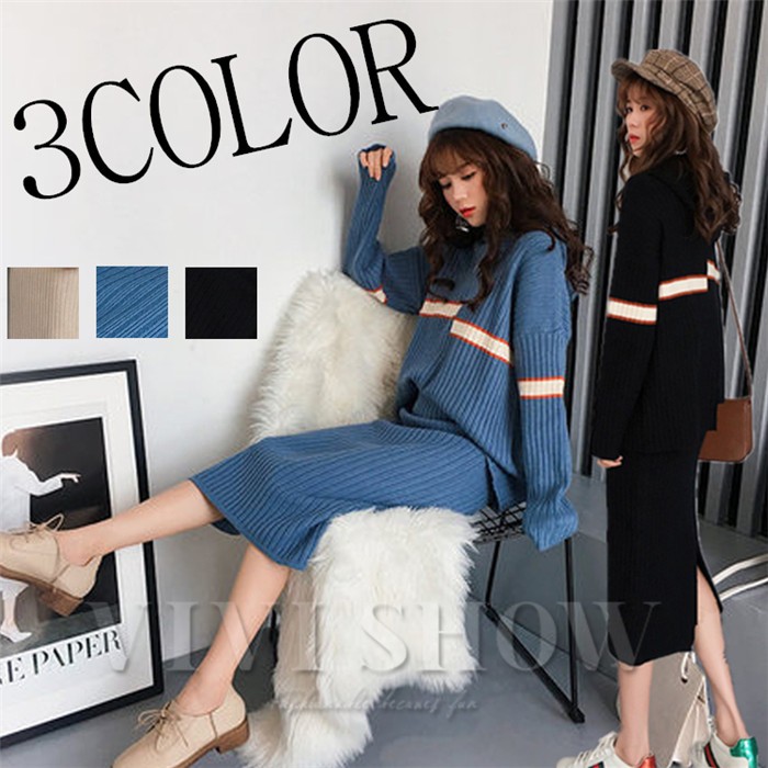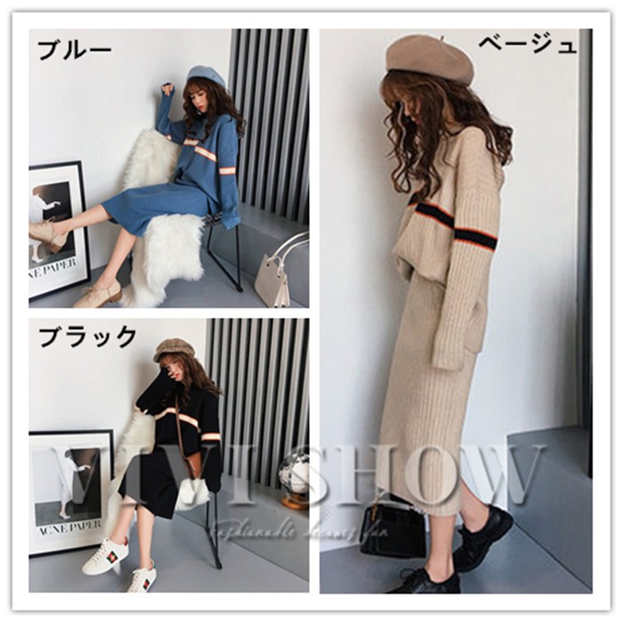 ■素材:ニットなど■カラー:ブルー ブラック ベージュ■サイズ:フリーサイズ着丈54cm 肩幅55cm バスト100cm 袖丈44cmスカート丈70cm ウエスト66cm ヒップ70cm■原産地:中国商品は取り寄せのため、納期は約7-10日前後、お急ぎの方はご了承ください。※交通状況により上記予定日より到着が遅れる場合があります。