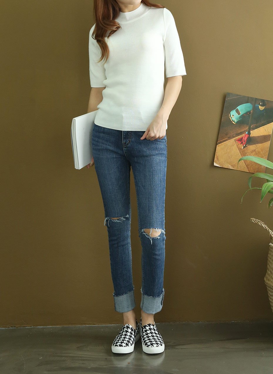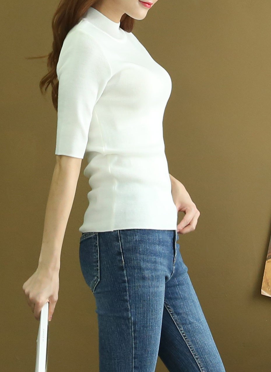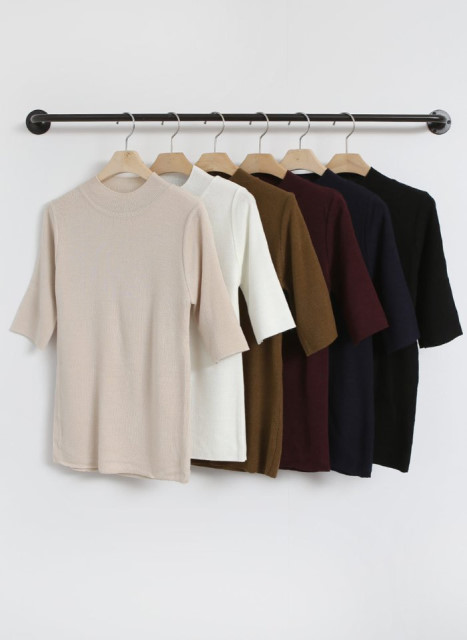 Autumn 5-ply knit tee 6col Warmth antagonistic female female short-sleeved Nittiti