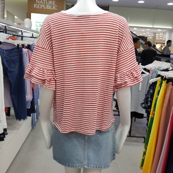 스트라이프패턴으로 밋밋하지 않으며 데일리로 편안하게 착용하시기 좋은 아이템입니다프리사이즈 총길이57가슴둘레116