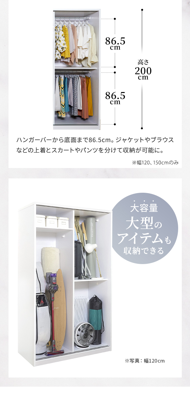 ●下部有効内寸:幅86x奥行49.5x高さ163cm(バー下156cm)
