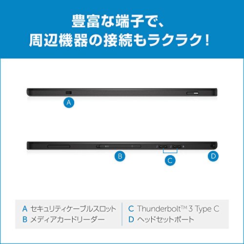 -. Feature : 製品紹介:4Kディスプレイを搭載したデタッチャブルモバイルPC / 備考:スタイラスペン別売、日本語キーボード付属 ※初回起動後にWindows上でキーボードの設定変更が必要 / OS/Officeソフト:Windows10 日本語版/Office Home&Business Premium / 画面サイズ/重量/バッテリー駆動時間:12.5インチ 4K タッチ/0.72kg/最大5時間 / CPU:インテル Core M5-6Y57 / メモリー/保存装置:8GB/256GB SSD / 接続方法:Thunderbolt3 x2、microSDスロット、オーディオジャック、前面5M背面8Mカメラ、マイク内蔵 / 無線LAN:802.11ac + Bluetooth 4.1 / セキュリティソフト:マカフィーリブセーフ12ヶ月版 / サポート:24時間365日電話窓口、1年間保証 / タッチスクリーン