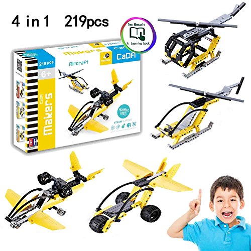 -. Feature : 【Construct What You Want 】: This airplane building blocks set has 219 pcs bricks that can build into 4 models, your kids can build the one they want or create something new with your imagination! Combine multiple sets together for extreme builds! / 【Have Fun with Learnin】: Challenge their mind with puzzle-like creations, improve fine motor skills & dexterity while keeping them engaged for hours. A great birthday gift idea! / 【Great Family Activity】: Everyone can be involved! Work together to create anything their imagination can come up with! Bond while building! / 【Easy to Build】: The illustrations in the box are helpful and clear, showing in detail how to build the models, and stating clearly what pieces are needed before get started. / 【Safe & Study】: Bricks are made of non-toxic ABS high quality plastic to reduce choking hazards. Solid design keeps pieces tightly connected for durable playtime.