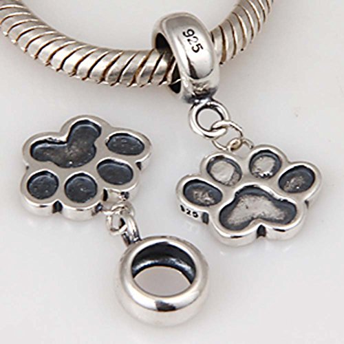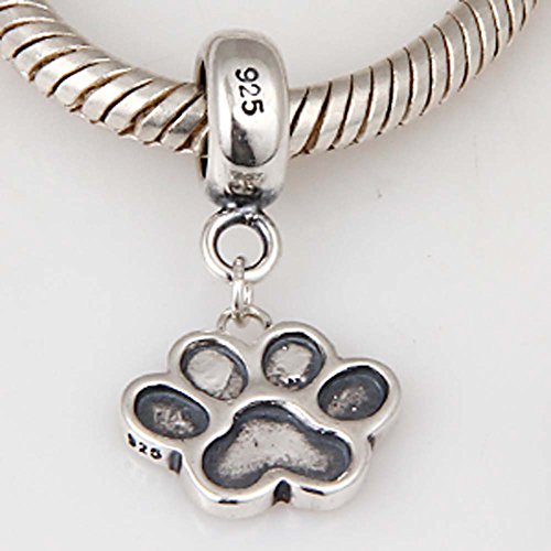 Puppy Dog Paw Dangle Charms 925 Sterling Silver Beads Fits Bracelets