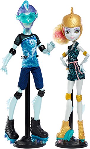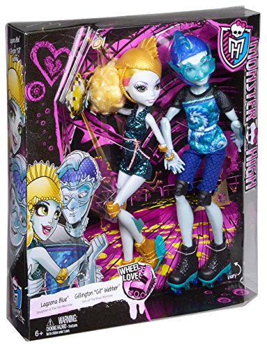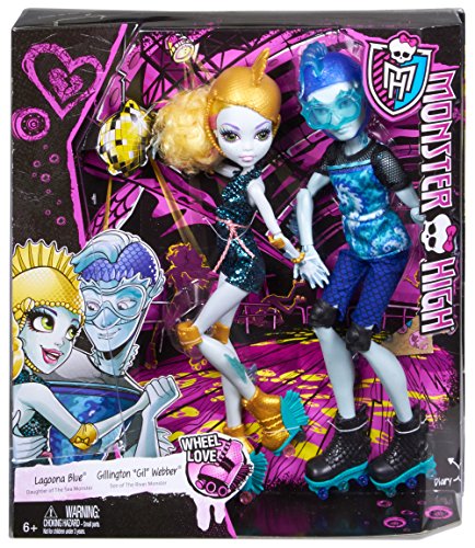 -. Binding : Toy -. Brand : Monster High -. Color : Blue -. EAN : 0678358830299 -. Feature : Gillington "Gil" Weber and Lagoona Blue dolls are available together in a two pack! / The scary cute Monster High couple is ready to roll right out of the box on a retro roller skating date / Lagoona Blue doll makes waves in a gore-geous patterned skating romper and accessories / Gilllington "Gil" Weber, Son of the River Monster, makes his own splash abandoning his signature helmet for sportier goggles and breathing tube / Two doll stands are included for monster play and display -. IsAdultProduct : 0 -. ItemPartNumber : CJC47 -. Label : Monster High -. Manufacturer : Monster High -. Model : CJC47 -. MPN : CJC47 -. PackageQuantity : 1 -. PartNumber : CJC47 -. ProductGroup : Toy -. ProductTypeName : TOYS_AND_GAMES -. Publisher : Monster High -. ReleaseDate : 2015-05-25 -. Studio : Monster High -. Title : Monster High Lagoona Blue and Gil Weber Wheel Love, Doll 2-Pack -. UPC : 678358830299 -. Warranty : No Warranty