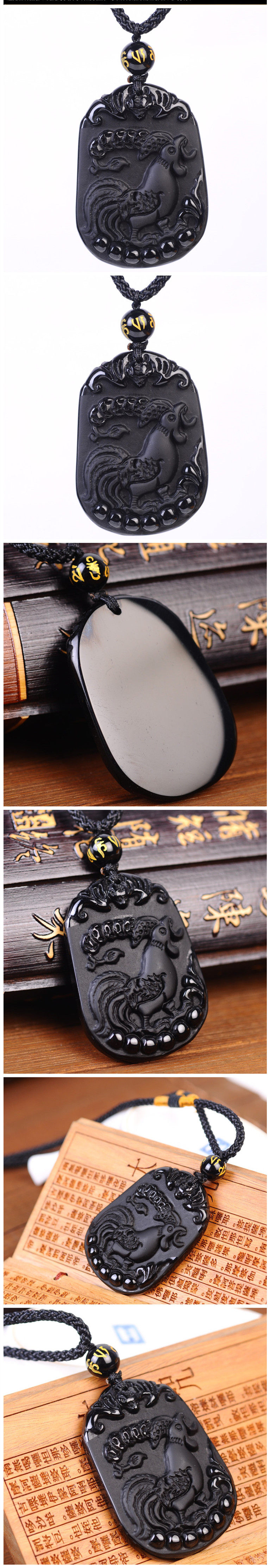开光天然磨砂黑曜石十二生肖鸡七星堂酉奇辰元吊坠