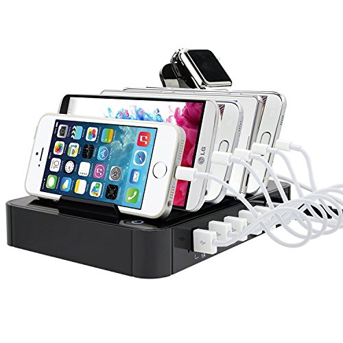 -. Title : Charging Station Stand for Multiple Devices, Tonyhoney Apple Watch and iPhone Desktop USB Charging Dock Cable Organizer, 6 Ports 50W 8.8A with Smart Identification Technology.